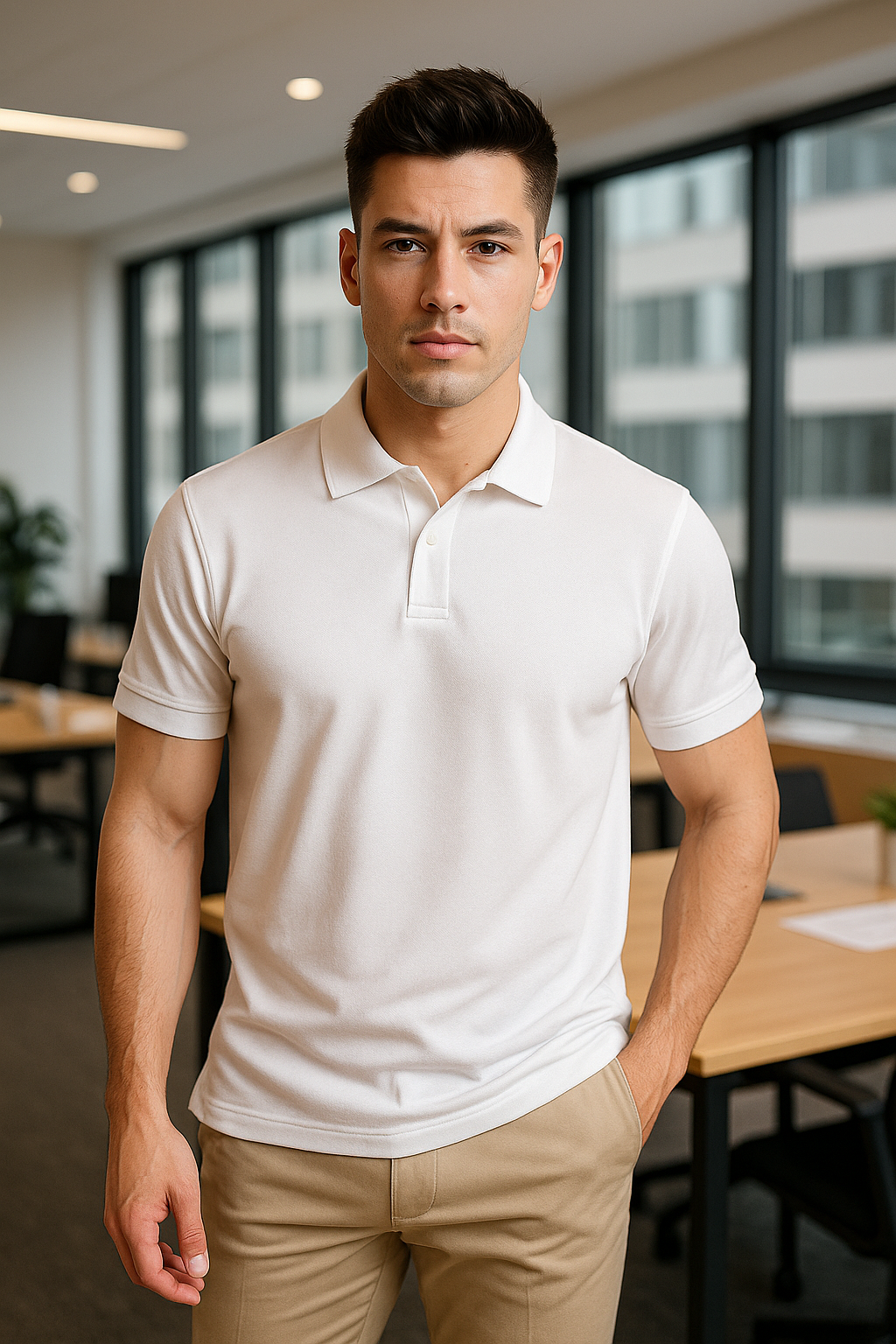 Perfecto para oficina, reuniones o combinar con pantalones chinos o jeans premium. Un básico sofisticado para tu armario masculino.
